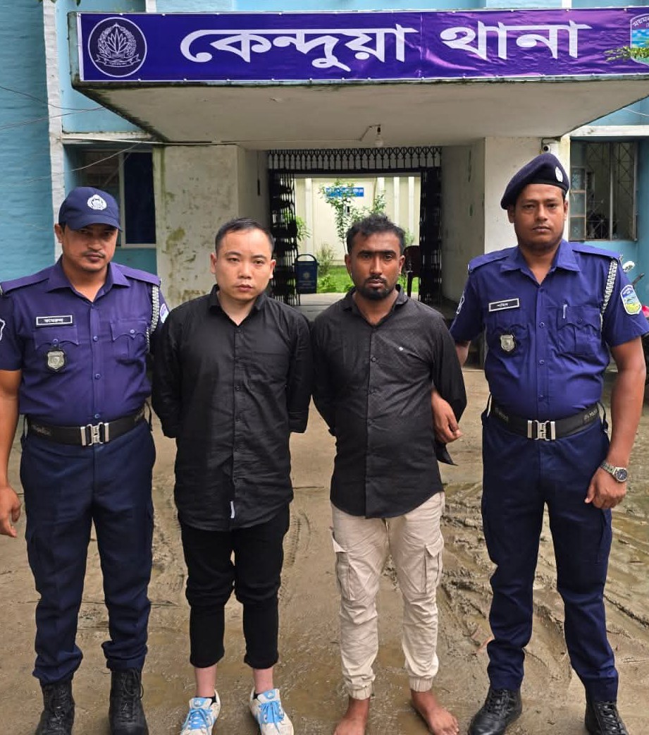কেন্দুয়ায় মানবপাচার চক্রের চীনা নাগরিকসহ ২ জন আটক, ৩ তরুণী উদ্ধার