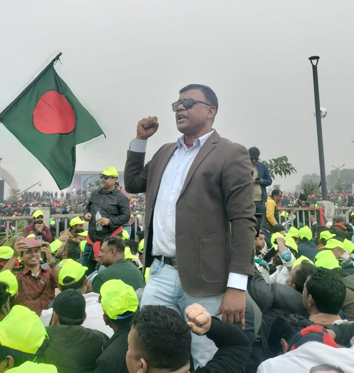 সকাল থেকেই নেতাকর্মীদের আগমন, অবস্থান নির্ধারণ, শৃঙ্খলা রক্ষা ও কর্মসূচির সার্বিক ব্যবস্থাপনায় মাঠে সক্রিয় ছিলেন তিনি।