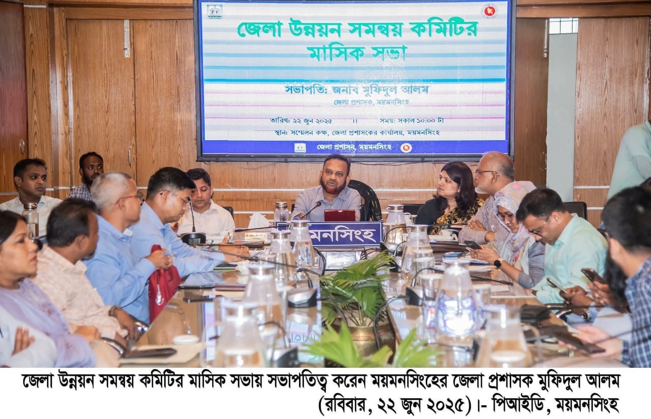 রবিবার (২২ জুন) সকালে ময়মনসিংহ জেলা প্রশাসকের সম্মেলন কক্ষে অনুষ্ঠিত জেলা উন্নয়ন সমন্বয় কমিটির মাসিক সভায় সভাপতির বক্তব্যে এসব কথা বলেন জেলা প্রশাসক মুফিদুল আলম।