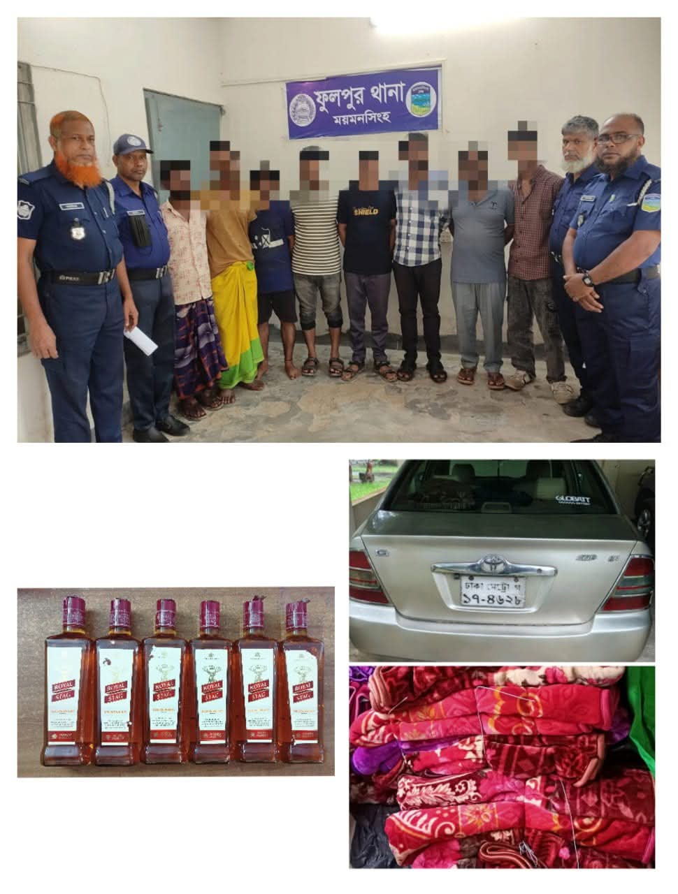 ফুলপুরে পুলিশের বিশেষ অভিযান : ভারতীয় মদ, কম্বল ও প্রাইভেটকারসহ আটক ৮