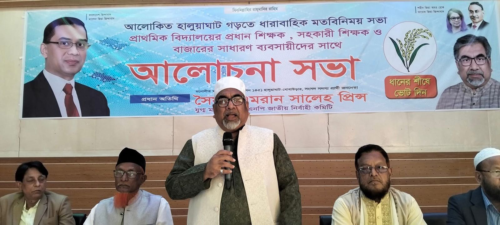 আলোকিত হালুয়াঘাট গড়ার লক্ষ্য নিয়ে ধারাবাহিক মতবিনিময়ের অংশ হিসেবে বিএনপির যুগ্ম মহাসচিব সৈয়দ এমরান সালেহ প্রিন্স শুক্রবার দুপুর থেকে রাত পর্যন্ত হালুয়াঘাটের প্রাথমিক শিক্ষক, ক্ষুদ্র ব্যবসায়ী ও বাজার শ্রমিকদের সাথে পৃথক তিন পর্বে মতবিনিময় করেন। প্রায় ৮ ঘণ্টাব্যাপী এই তিনটি সভা অনুষ্ঠিত হয় হালুয়াঘাট পৌর শহরের উত্তর খয়রাকুড়িস্থ ৫০০ আসনের উপজেলা মিলনায়তনে।